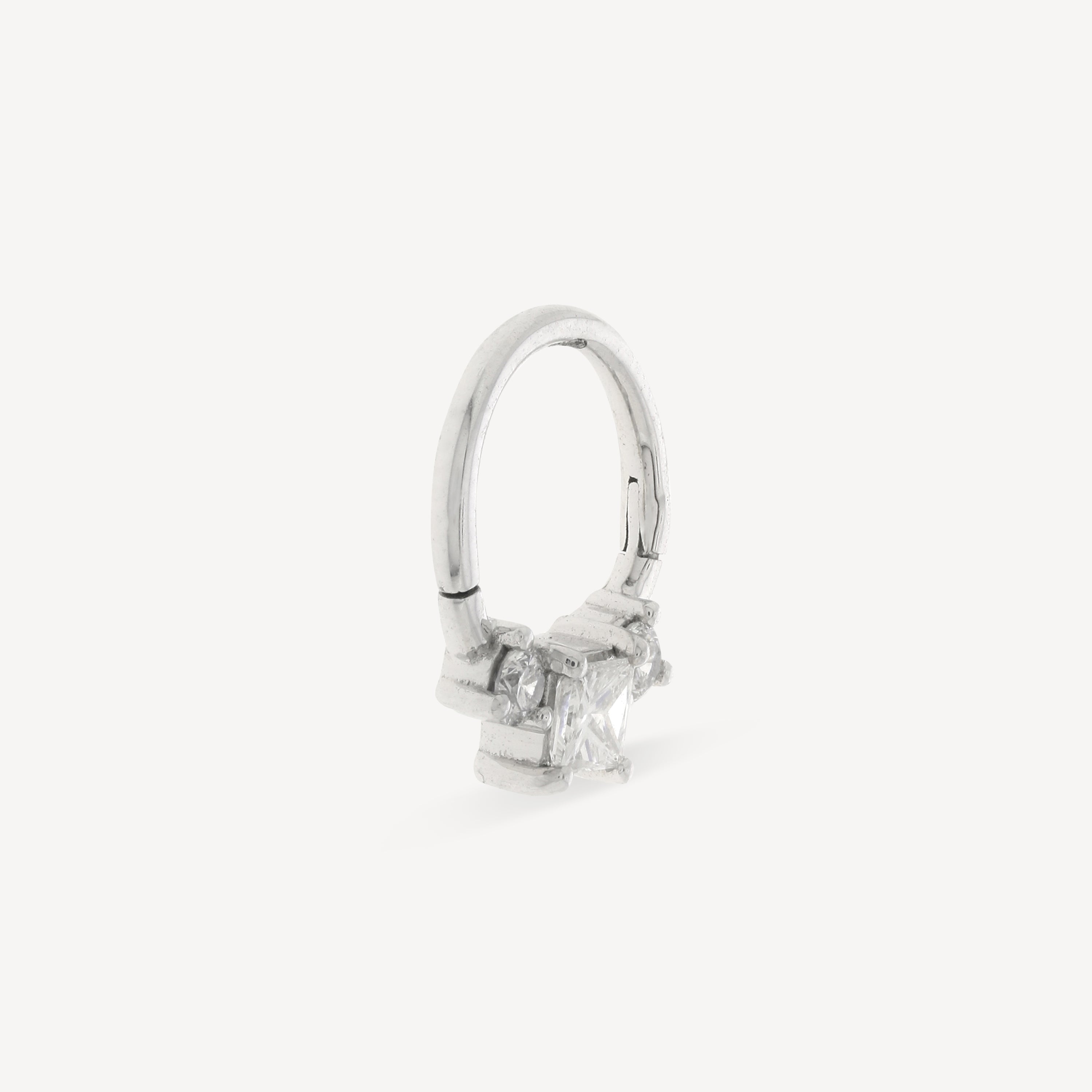 Piercing Hoop Plate 8mm White Gold Princess Diamonds 2x2mm