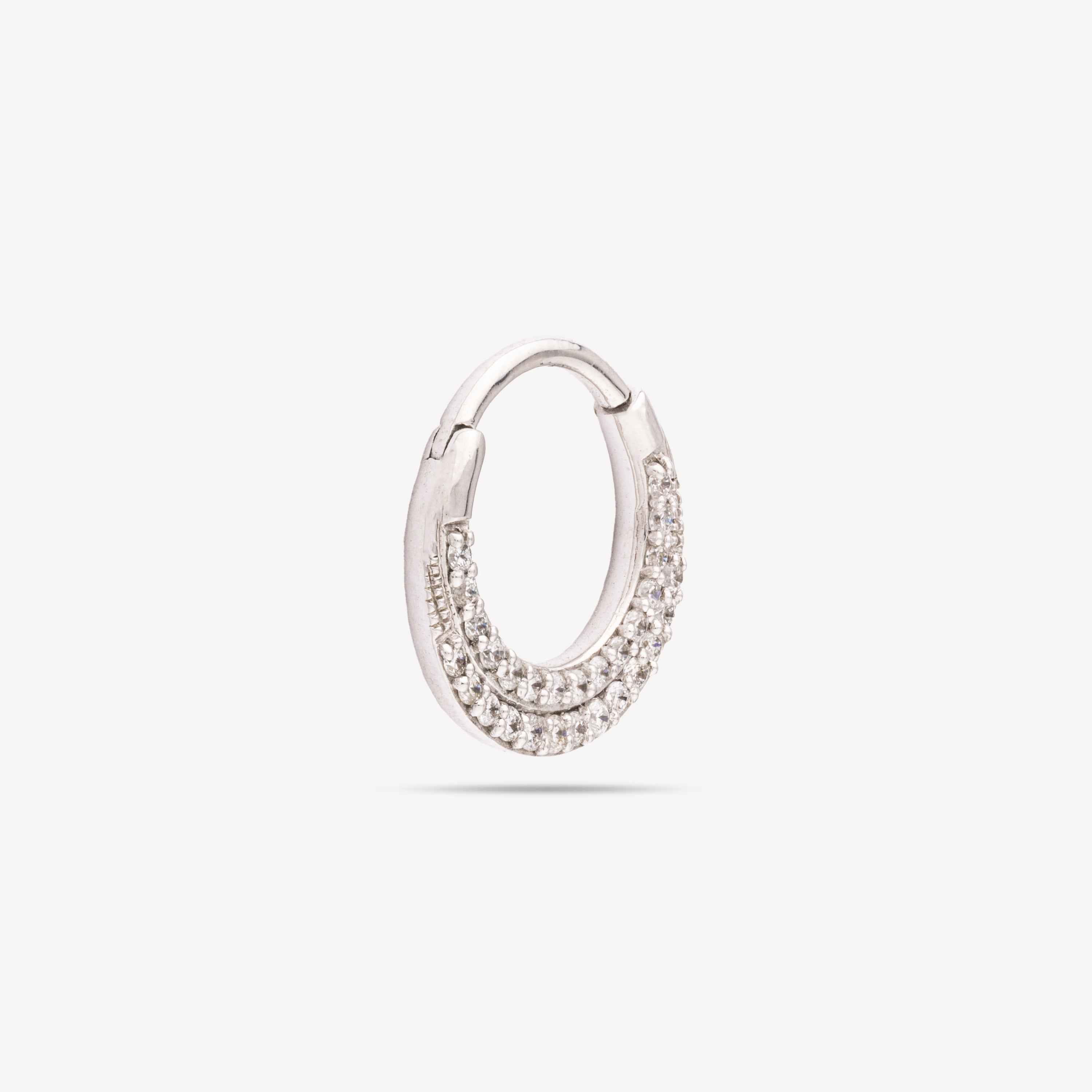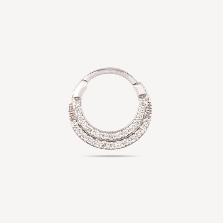 Piercing Hoop Plate 8mm White Gold Double Pavage