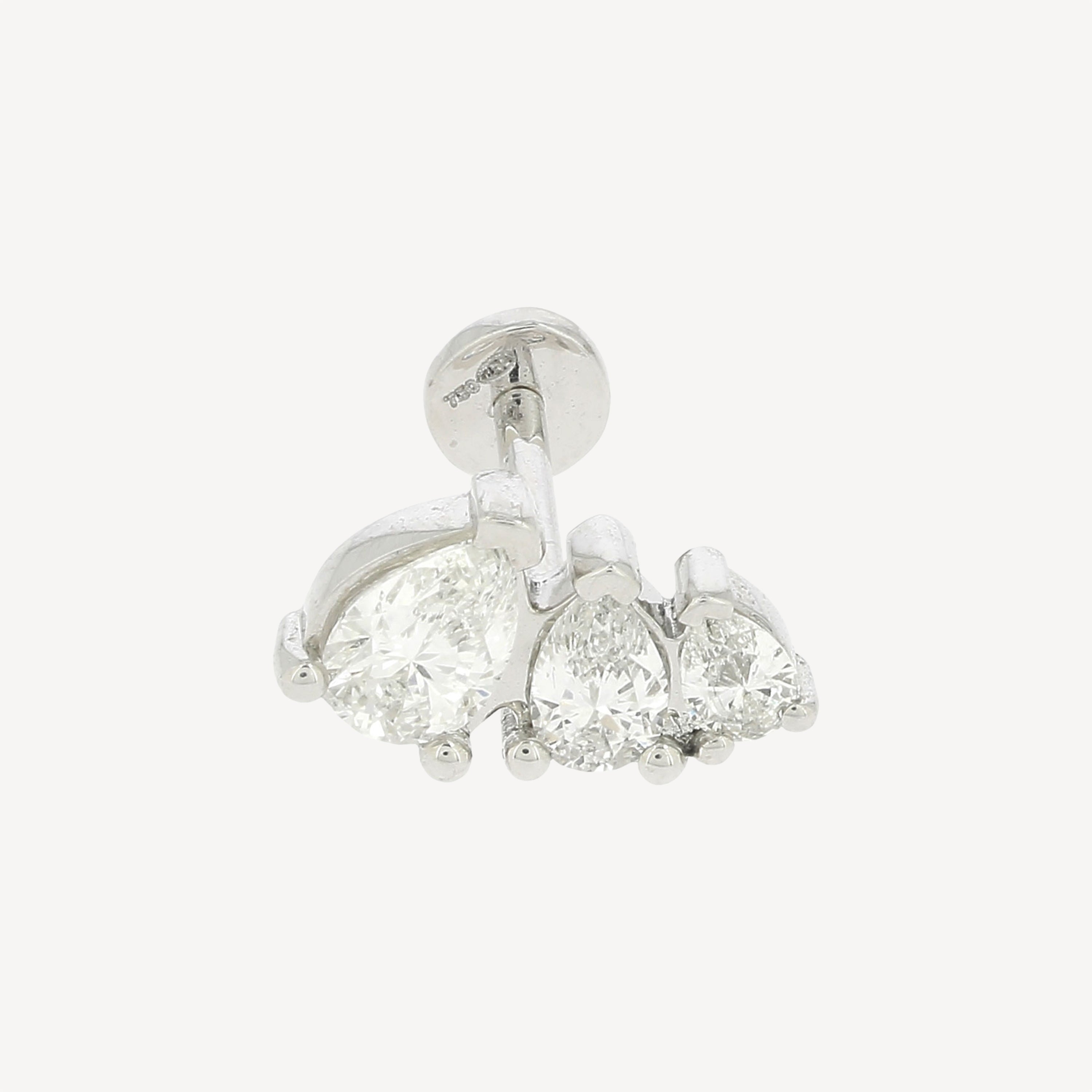 Piercing Stud 3 graduated pears white gold