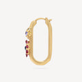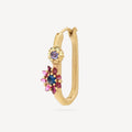 This Hoop in yellow gold is delicately adorned with a pink sapphire flower.