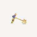 Discover the timeless elegance of this violet "Princess Cut" earring, magnified by three acid-green round sapphires. These precious stones, delicately encrusted in a stud in the shape of a subtle geometry, captivate with their brilliance and harmony. Carefully crafted, this jewel is enhanced by a butterfly clasp in 18-carat recycled yellow gold, adding a touch of refinement and authenticity to this exquisite piece.