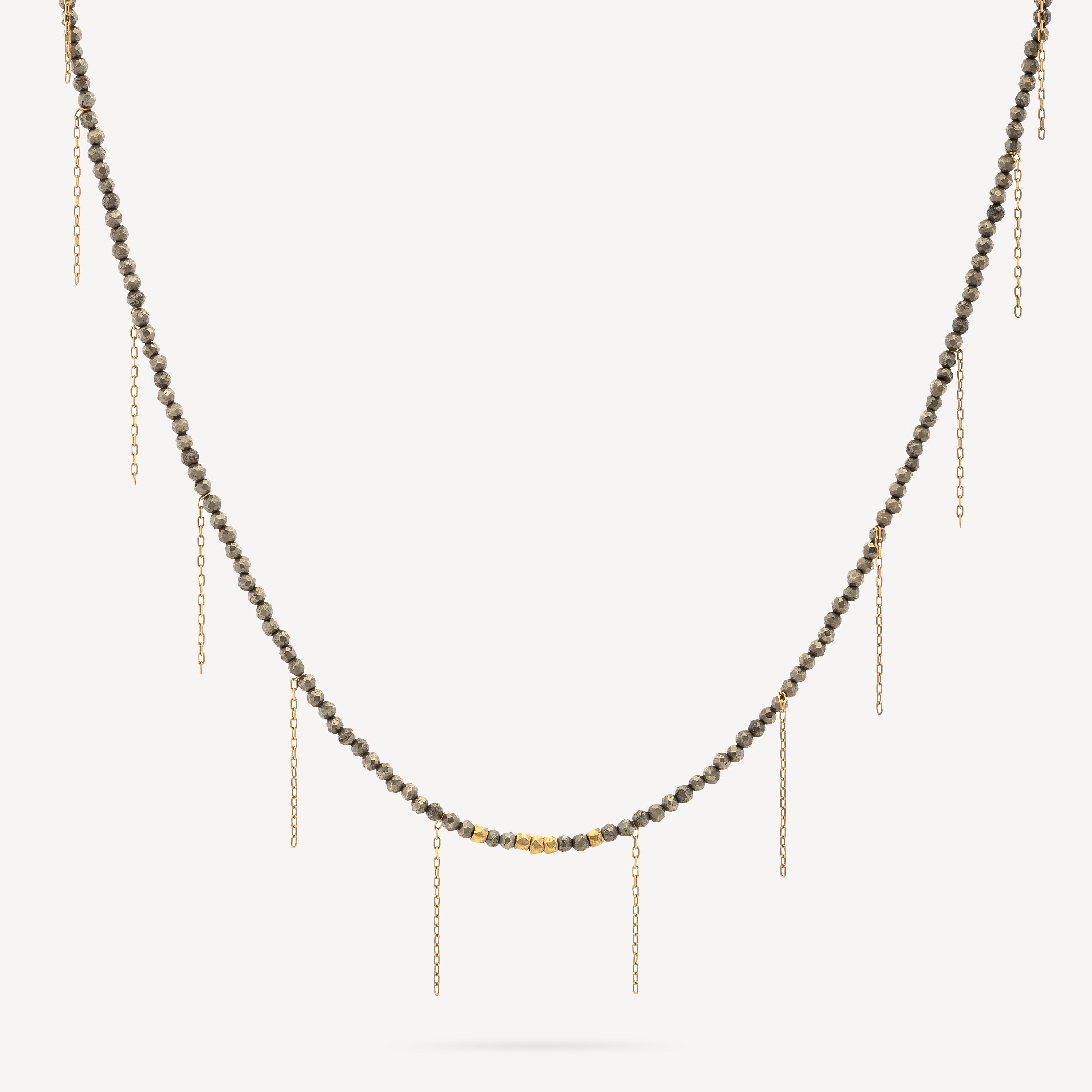 Pyrite necklace with yellow gold bangs.