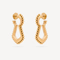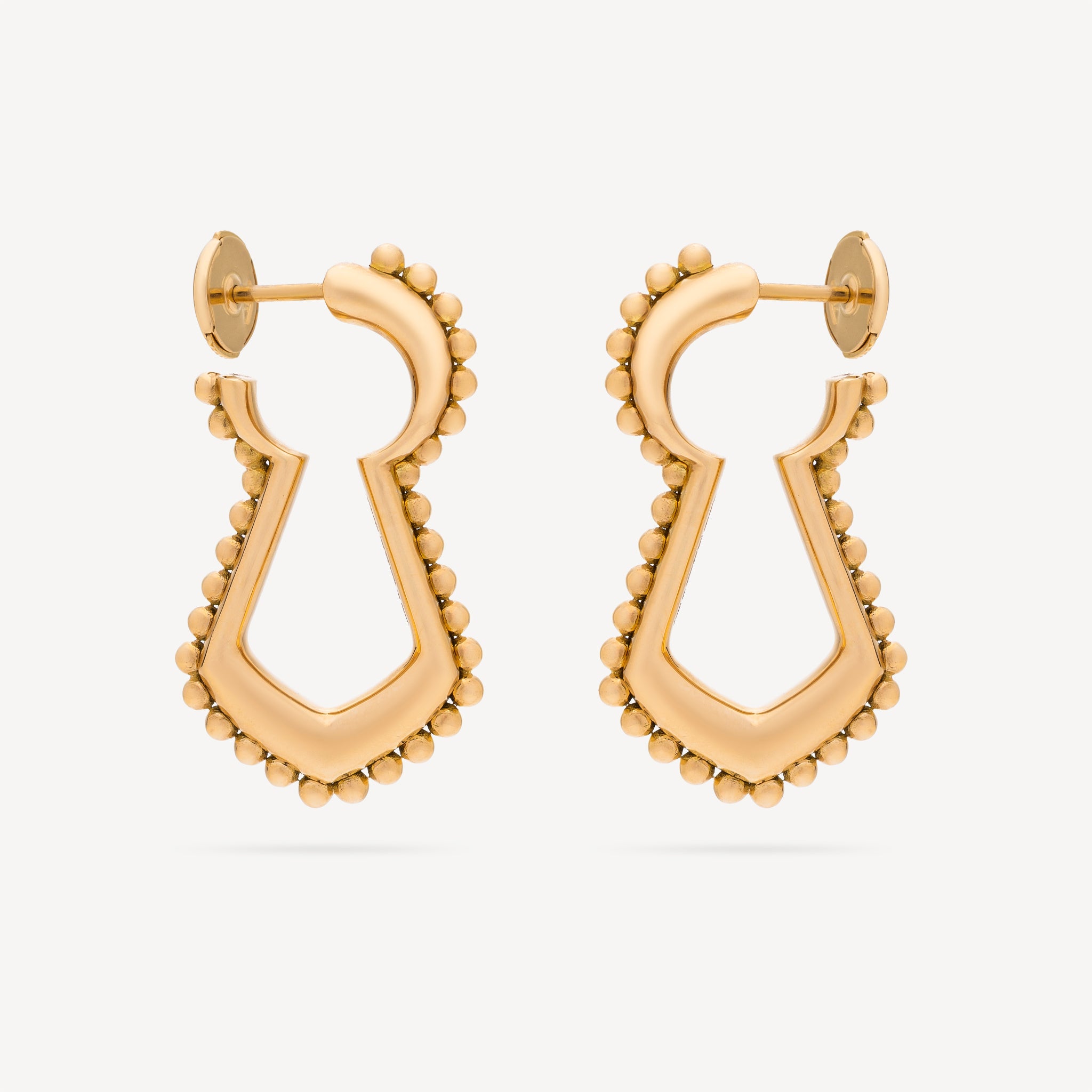 The large Unlock earrings represent a lock, entirely crafted in 18-carat yellow gold and studded with pearl details all around.