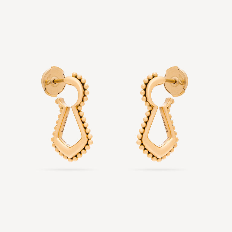 The small Unlock earrings represent a lock, entirely crafted in 18-carat yellow gold and studded with pearl details all around.