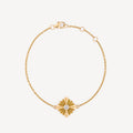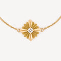 The Stamp bracelet is in polished yellow gold and features a central diamond. The Stamp motif is like an imprint that repeats and multiplies, reminiscent of the multitudes of passport stamps in variegated colors and shapes. The diamond lifts energies, reinforcing mental clarity and inner strength.