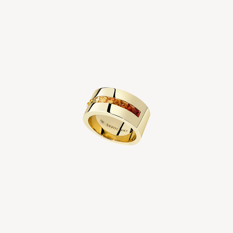 - Materials: Yellow gold, Multicolored sapphire