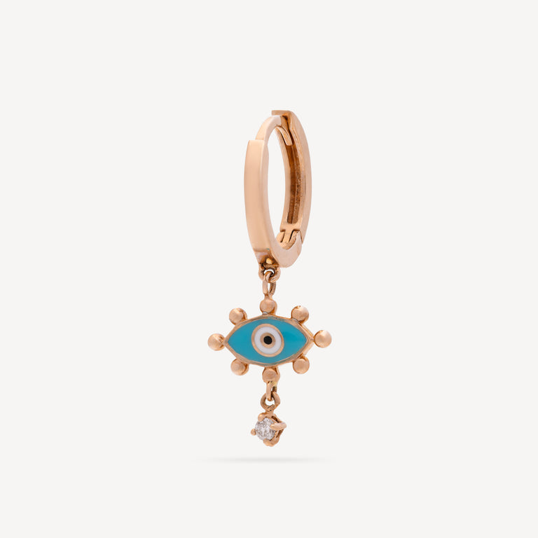 This Rose Gold Hoop is decorated with a white diamond eye pendant.