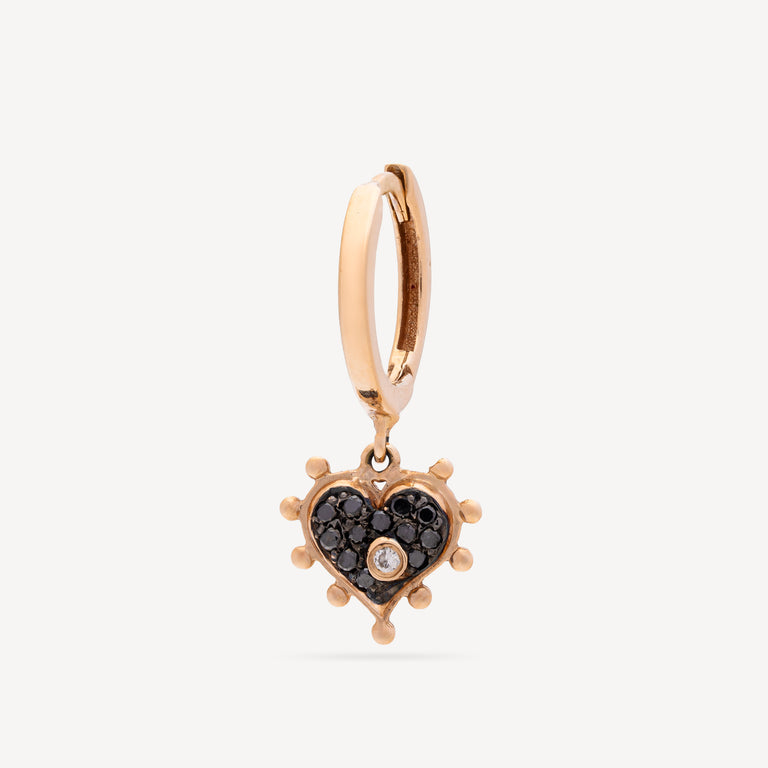 Made of high-quality Rose Gold , this Selda earring features a delicate heart adorned with black diamonds and a dazzling white diamond.