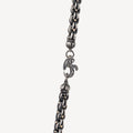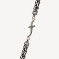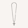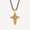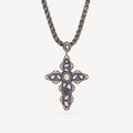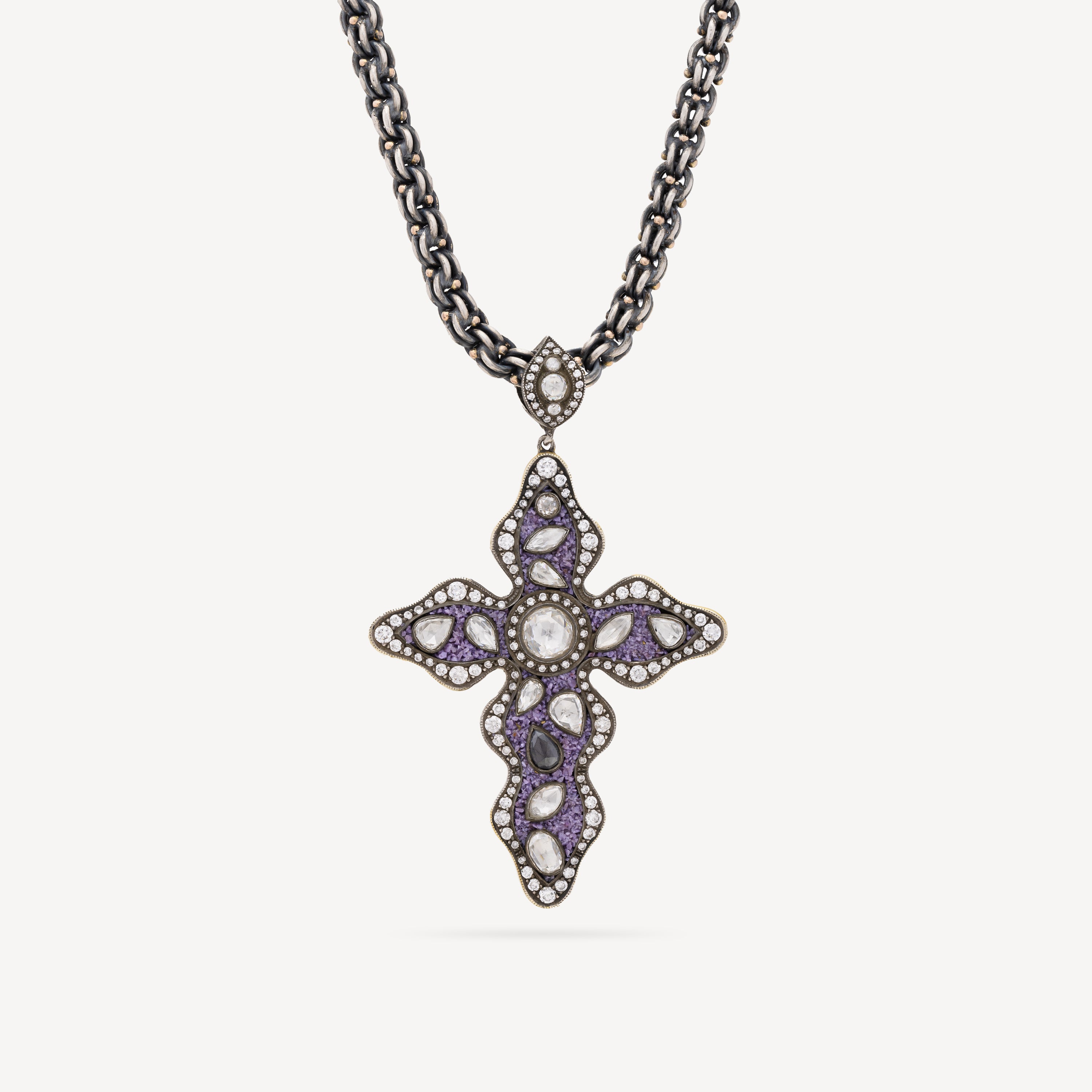This elegant necklace combines a Silver chain with a yellow gold cross pendant set with diamonds and precious stones. The symbolic cross and precious elements make this jewelry a timeless choice.