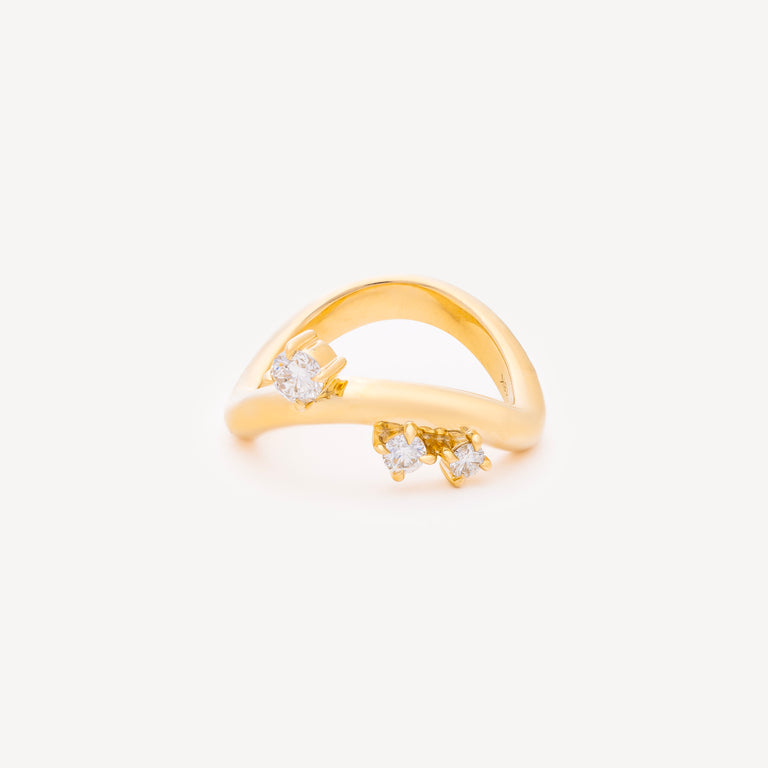 The Doshi collection pays tribute to Balkrishna Doshi, a pioneer of Indian modernism. Shahla Karimi's Doshi Cluster N°2 ring, with its white diamonds, is inspired by the flowing curves and vaulted roofs of her Sangath studio. White diamonds symbolize purity, clarity and inner balance.