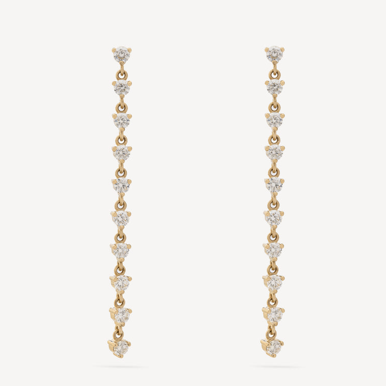 These dangling earrings are an elegant and sophisticated choice. Crafted in 14ct gold and adorned with ten sparkling diamonds, they add a touch of brilliance to any outfit.