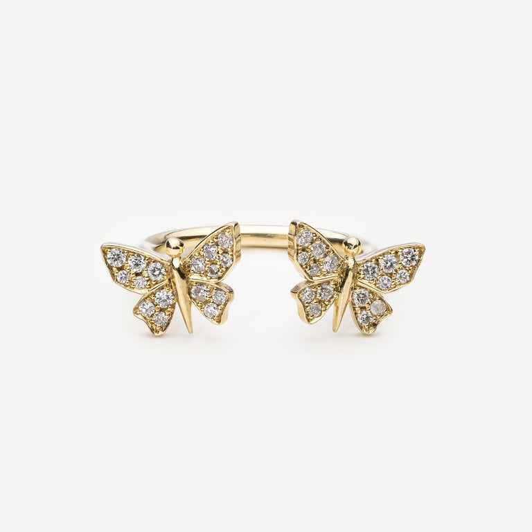 This butterfly ring from Shylee Rose Jewelry is the perfect piece of jewelry for a touch of elegance. Made of gold and diamonds, the unique butterfly design gives a delicate, feminine appearance.