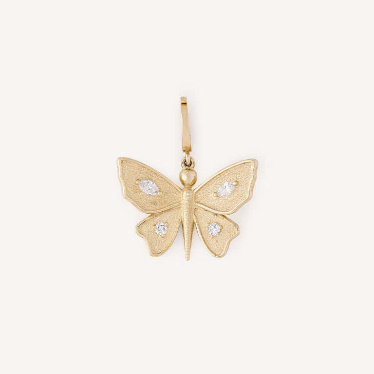 This Large Diamond Butterfly pendant in 18ct yellow gold is an elegant and timeless piece of jewelry. The butterfly is a symbol of lightness and transformation, while the white diamonds add a touch of sparkle and glamour.