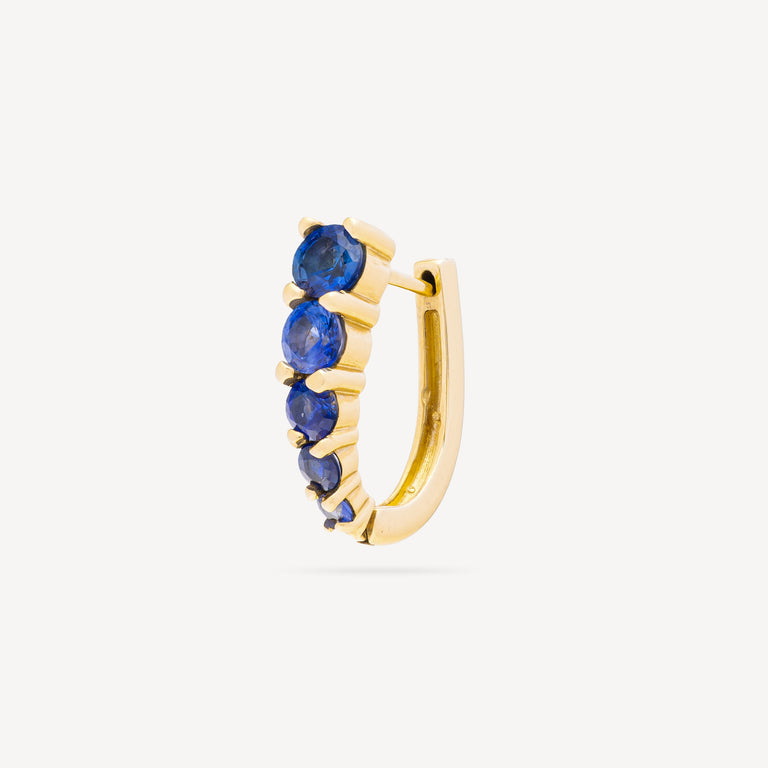 Crafted in 14-carat yellow gold, this magnificent earring is set with a graduated row of round ocean blue sapphires. Suitable for both day and night wear.