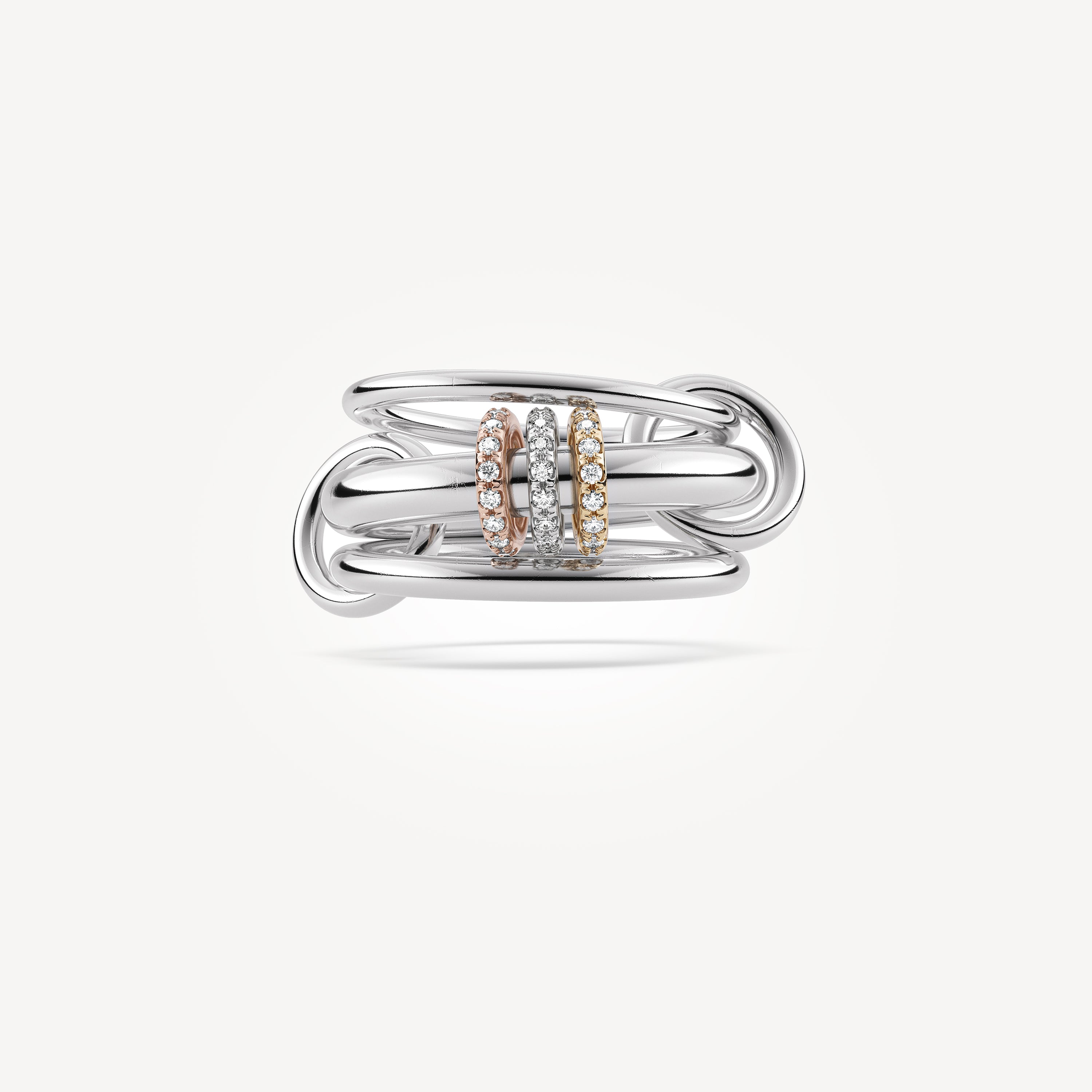 Gemini Ring Pavée 3 Rings Silver Gold Diamonds