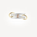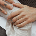 The Acacia ring is distinguished by its contemporary design: three slender rings support two moving metal elements. Delicate and light, it embodies a powerful minimalism. Its connectors allow it to be worn spread over several fingers or stacked into a sculptural piece.