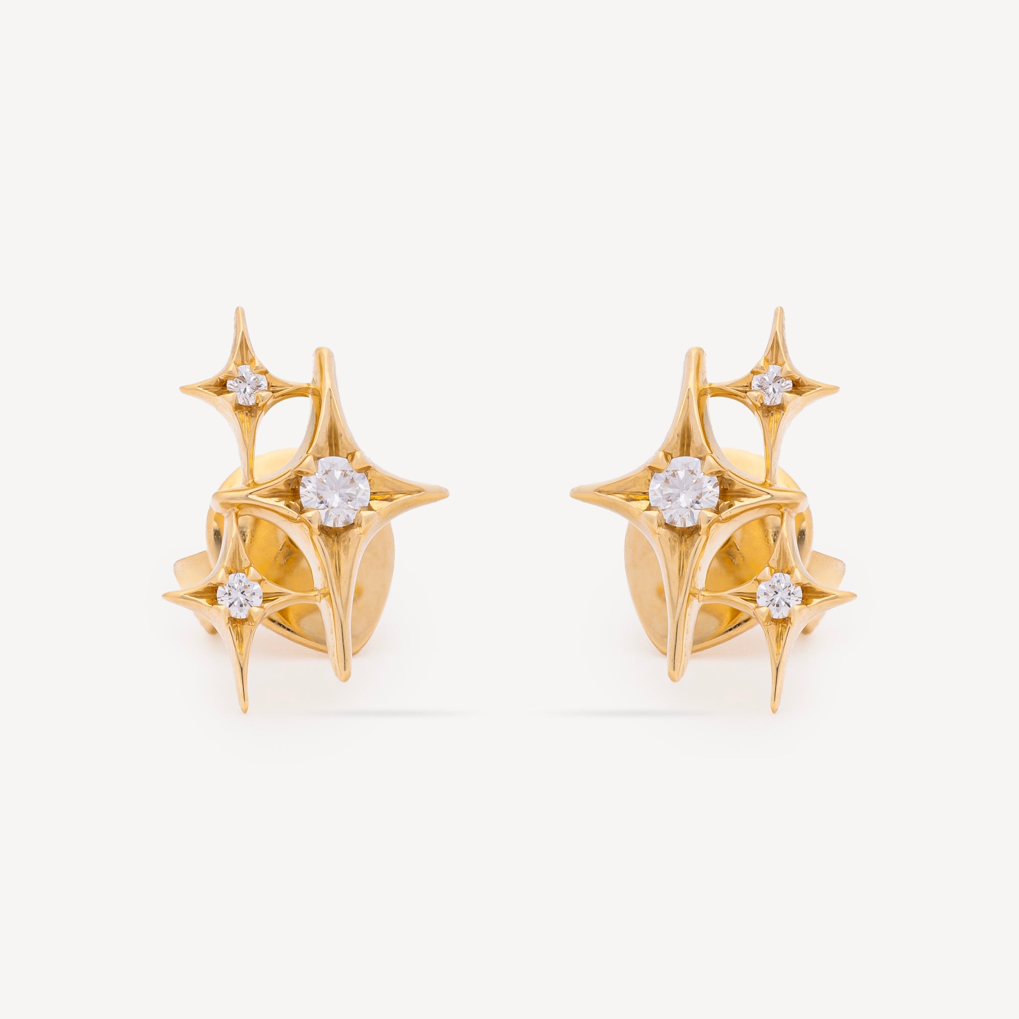 Falling Stars earrings in yellow gold are adorned with dazzling white diamonds, carefully set to create a sparkling, star-like effect that catches the light with every movement. White diamonds protect against negative energies, encourage inner harmony and develop strength and determination.