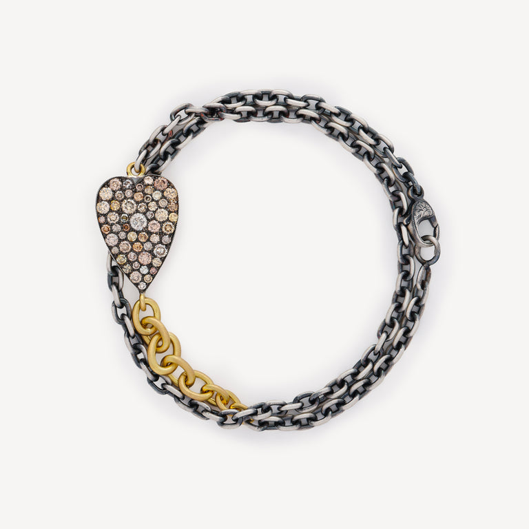 This yellow gold and Silver bracelet features a heart adorned with champagne diamonds.