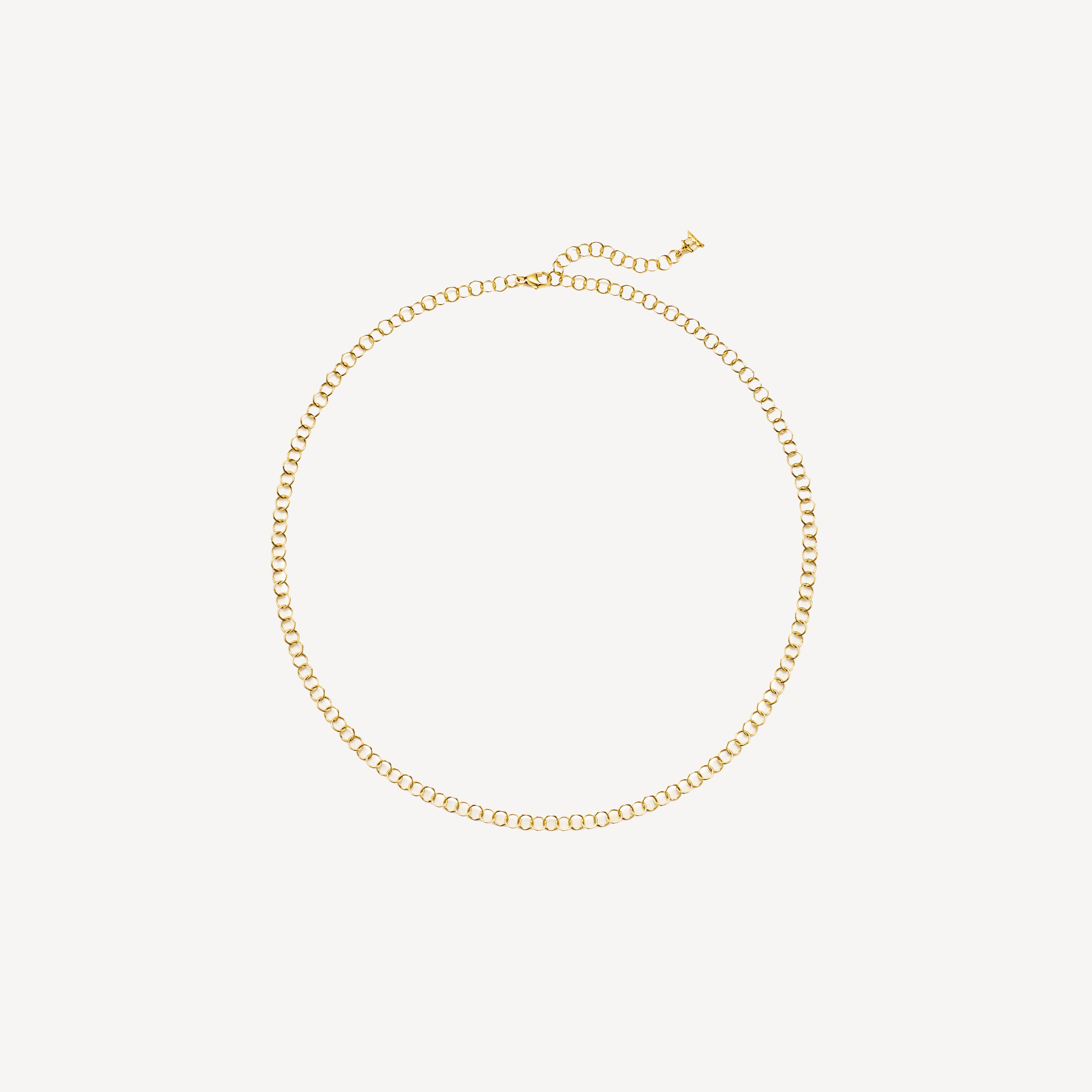 The 18K Fine Round chain features delicate circular links fashioned from Temple St Clair's signature yellow gold. This magnificent chain is the ideal support for amulets, angels, zodiac signs or any other pendant. It can also be worn on its own as a striking, discreet necklace.