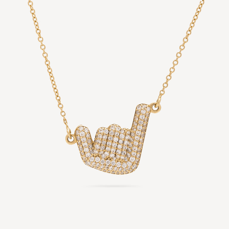 This stunning yellow gold necklace is paved with sparkling diamonds, creating a look that's both elegant and cool.