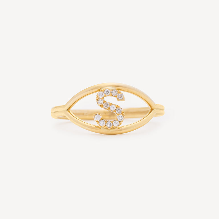 Created in 14-carat yellow gold and set with diamonds, the Keren ring can be personalized with various letters of the alphabet and meaningful symbols.