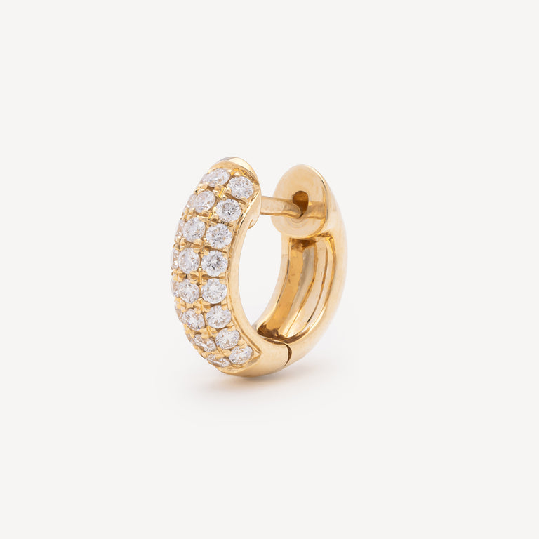 Small classic Hoop in 14ct yellow gold, paved with white diamonds.