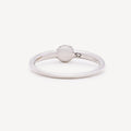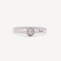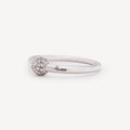White gold ring set with white diamonds in the center.