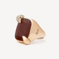 Yellow gold Medium ring set with a central jasper and a claw paved with white diamonds.
