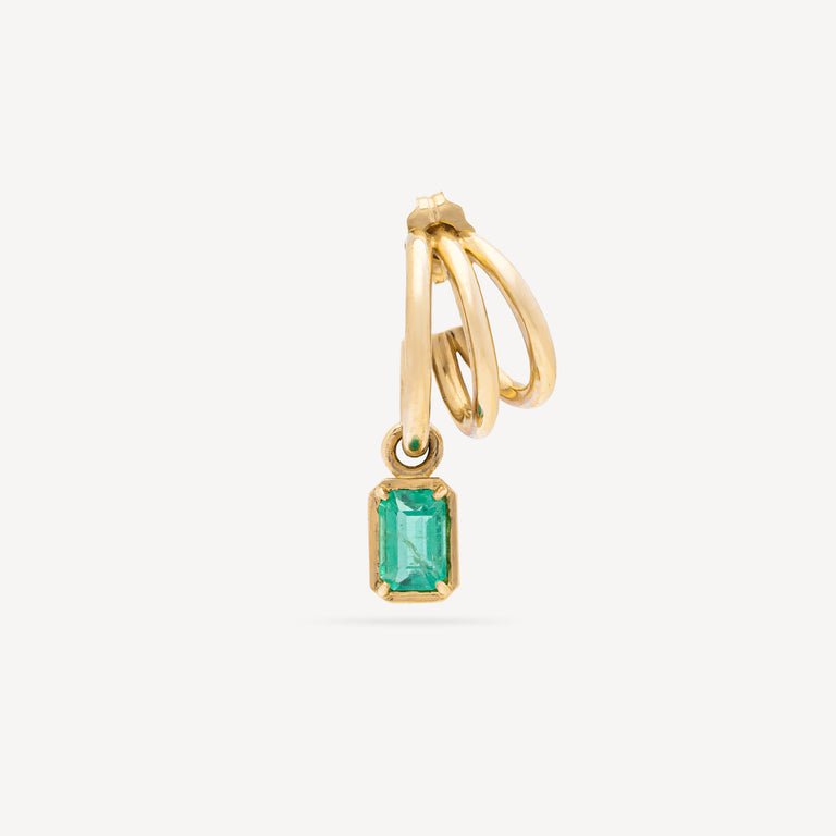This beautiful, chic earring is crafted with carefully selected vibrant emeralds and polished 14-carat yellow gold. This simple yet elegant model is versatile and lightweight.