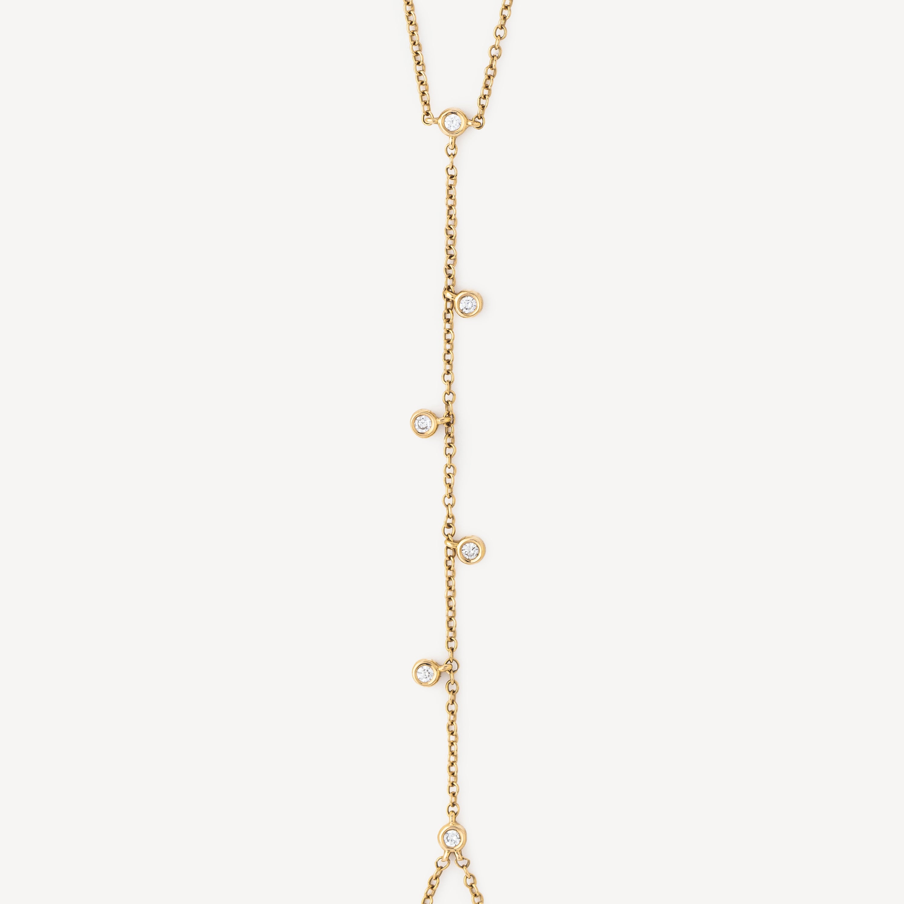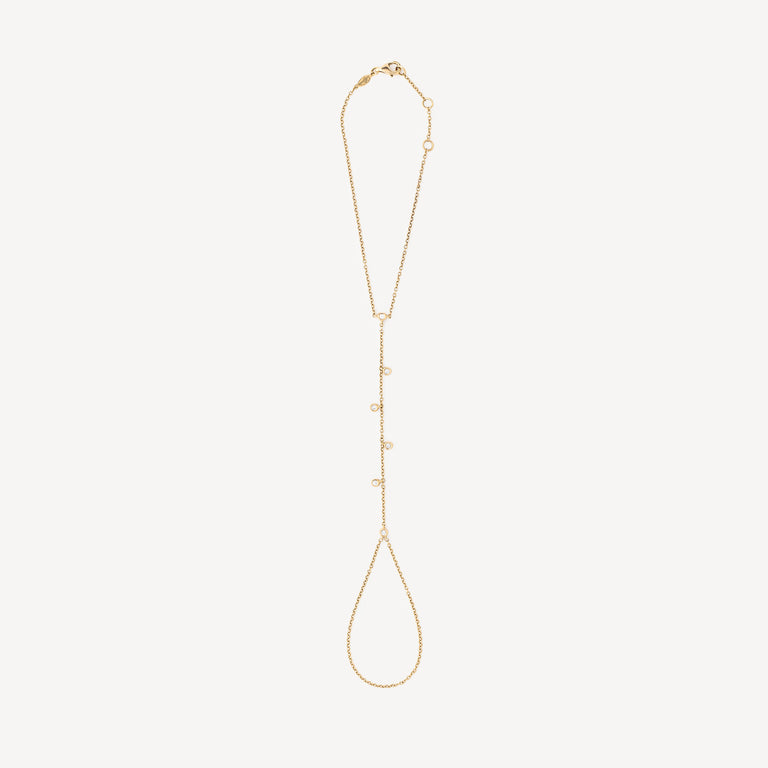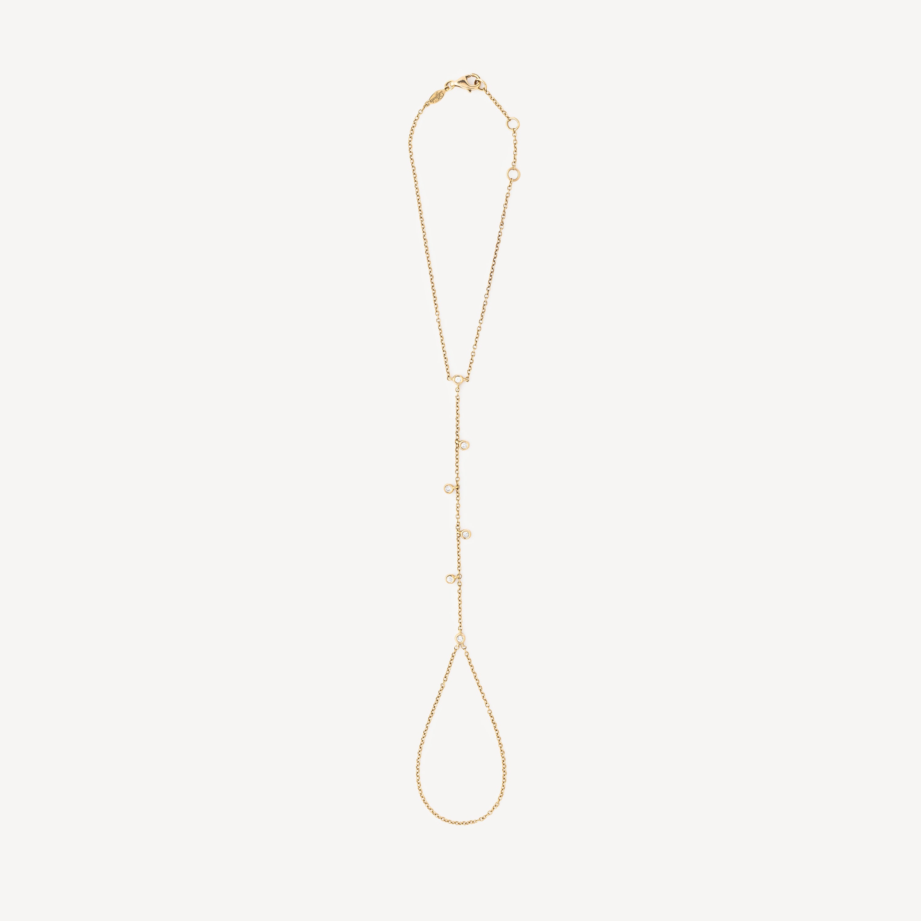 Hand bracelet in Rose Gold with small pendants set with white diamonds.