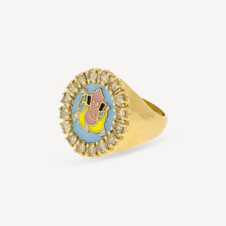 - Materials: Yellow gold, Champagne diamond, Enamel
