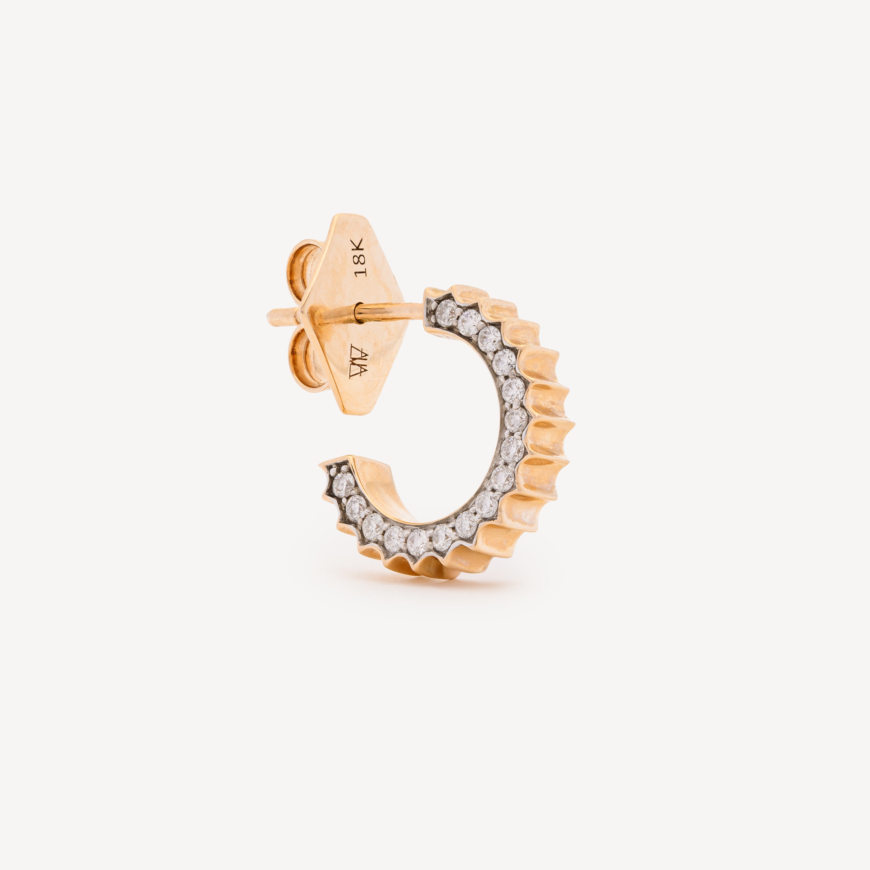 Earring in 18ct Rose Gold adorned with a line of banked diamonds. Can be worn interchangeably between left and right ear, depending on whether you wish the diamonds to face inwards or outwards.
