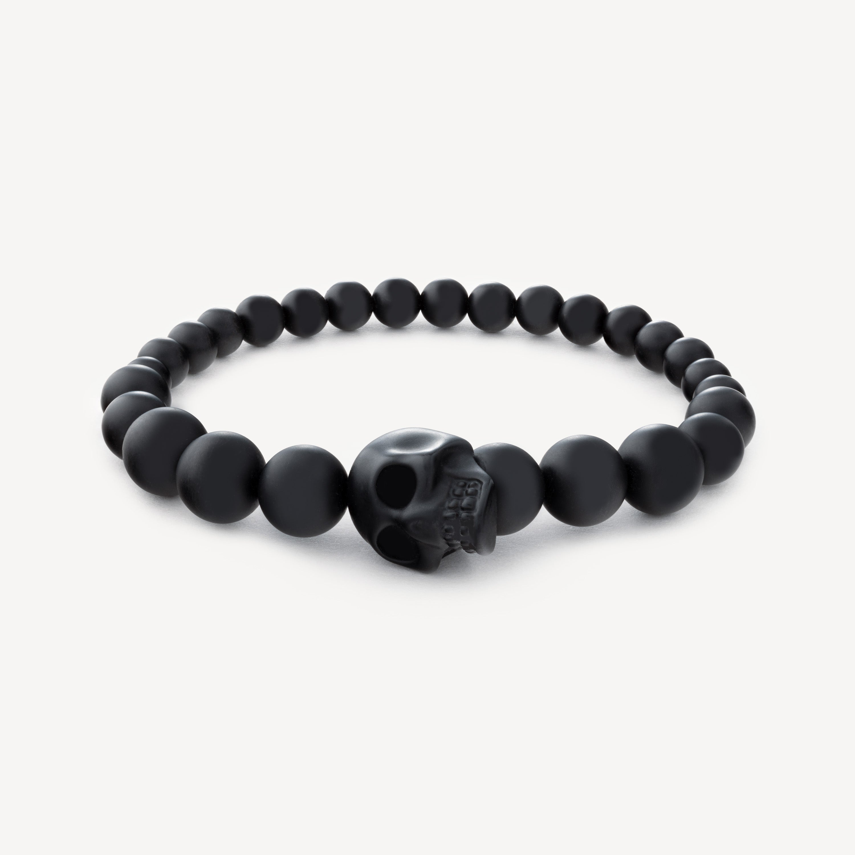 Beaded skull bracelet in opaque black resin. Elastic bracelet.