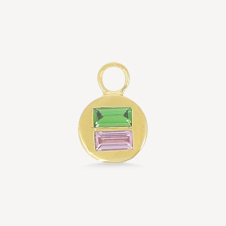 - Materials: Yellow gold, pink sapphire, Tsavorite