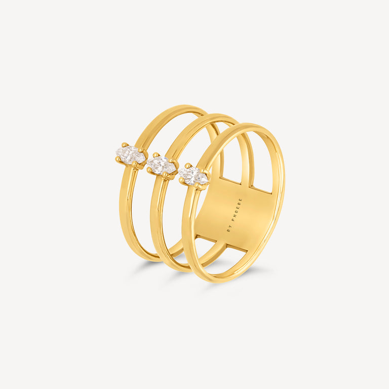 The By Phoebe 3 Promesses ring embodies deep symbolism with its three-row yellow gold structure. Each row hosts a white diamond, affirming commitment, love and trust through a balanced composition. The diamond transmits a luminous energy to accompany a new beginning.