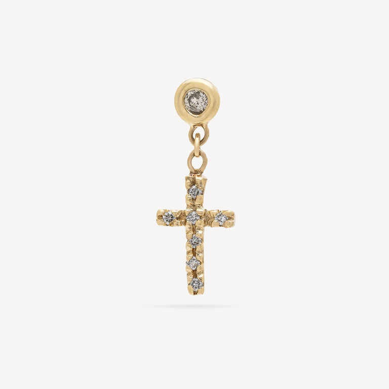 Stud yellow gold earrings with small cross earrings paved with white diamonds.