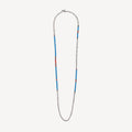 Bracelet mounted on a black cord made of predominantly blue African beads andSilver discs. Can also be worn as a necklace.
