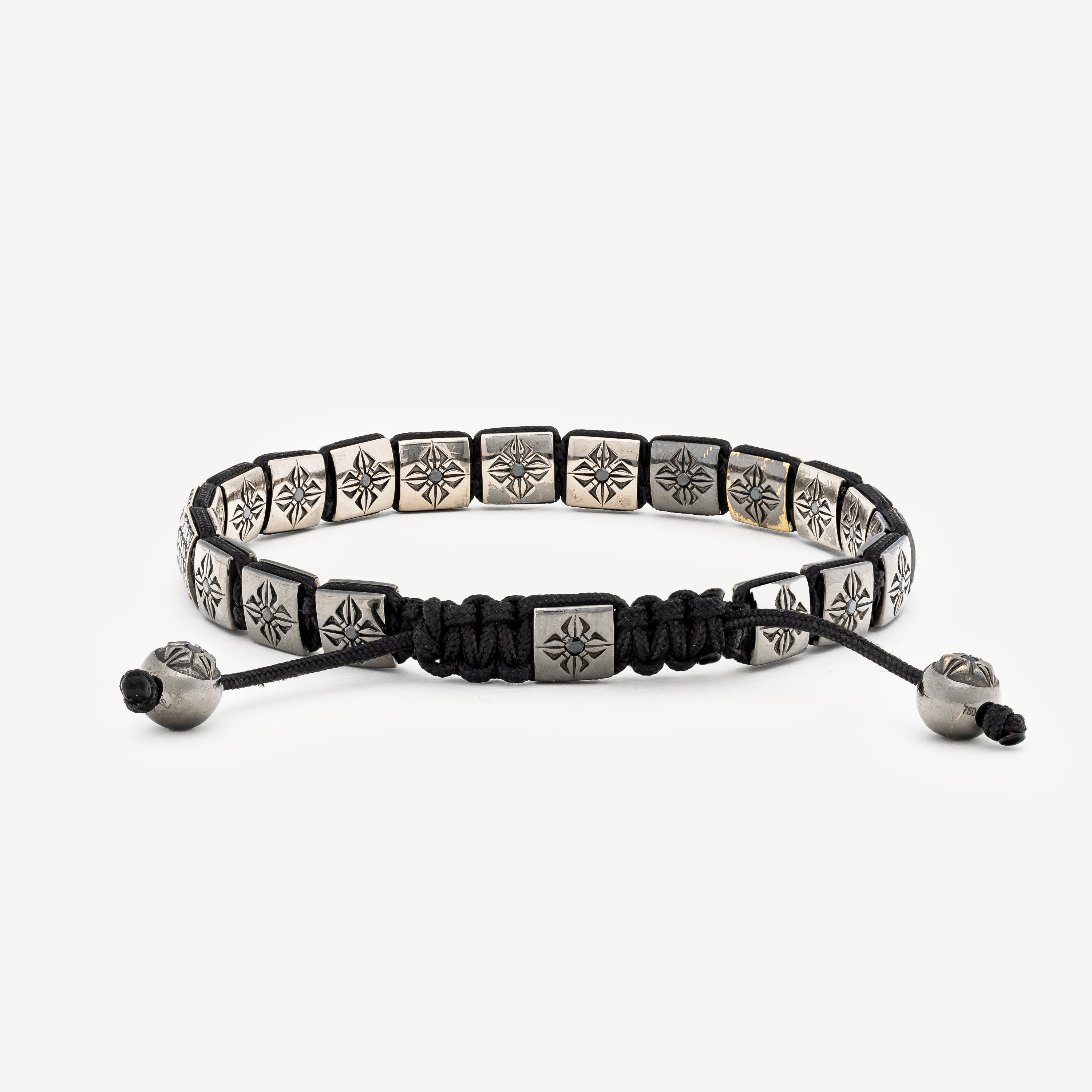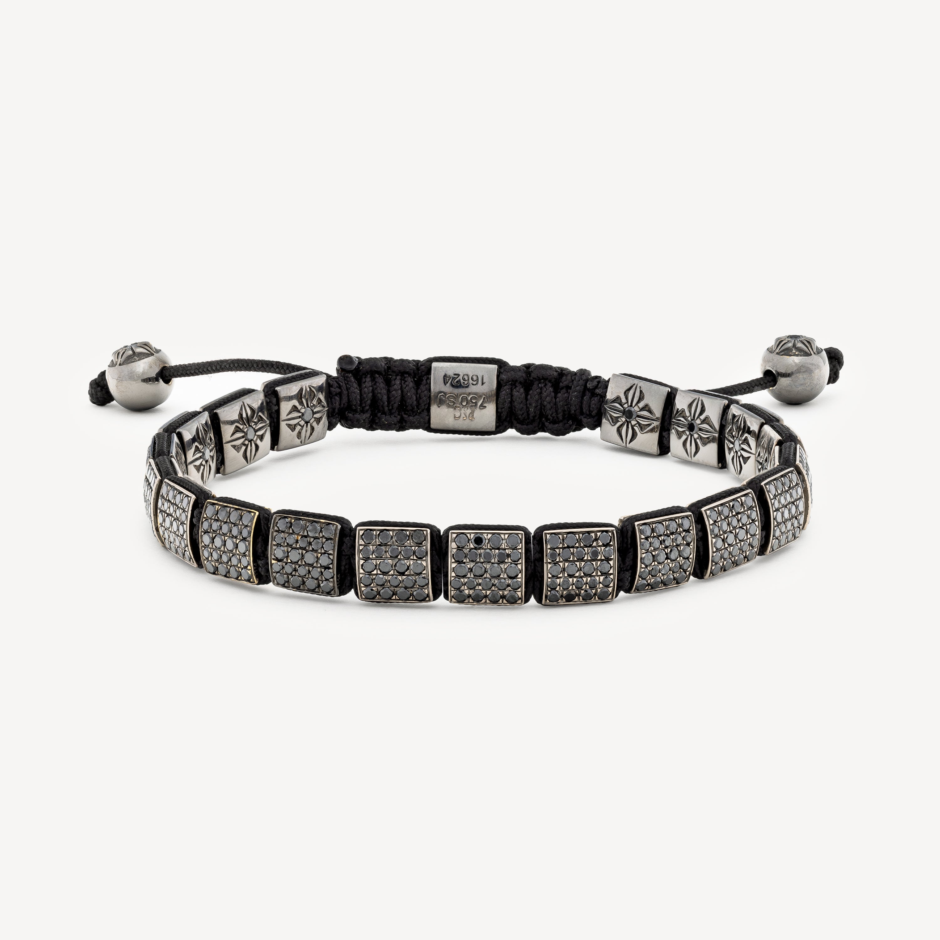 Bracelet mounted on a black cord composed of 20 black gold locks and 2 beads: 13 locks paved with black diamonds, 6 black gold locks set with 2 black diamonds, 1 black gold lock set with a black diamond, and 2 beads set with two black diamonds.