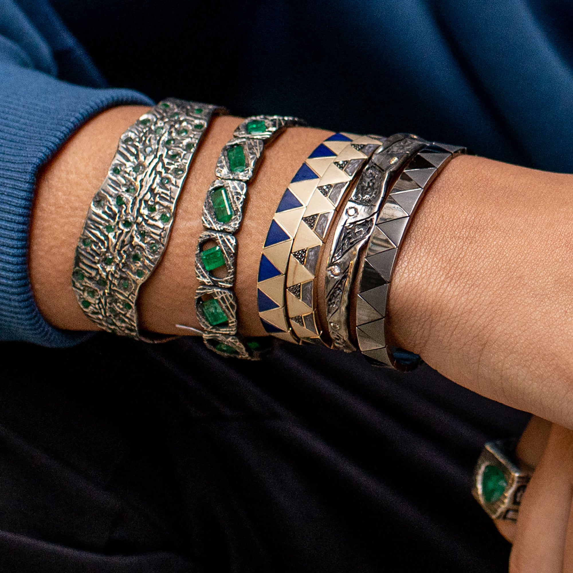 Large Multi Emerald Cuff Bracelet