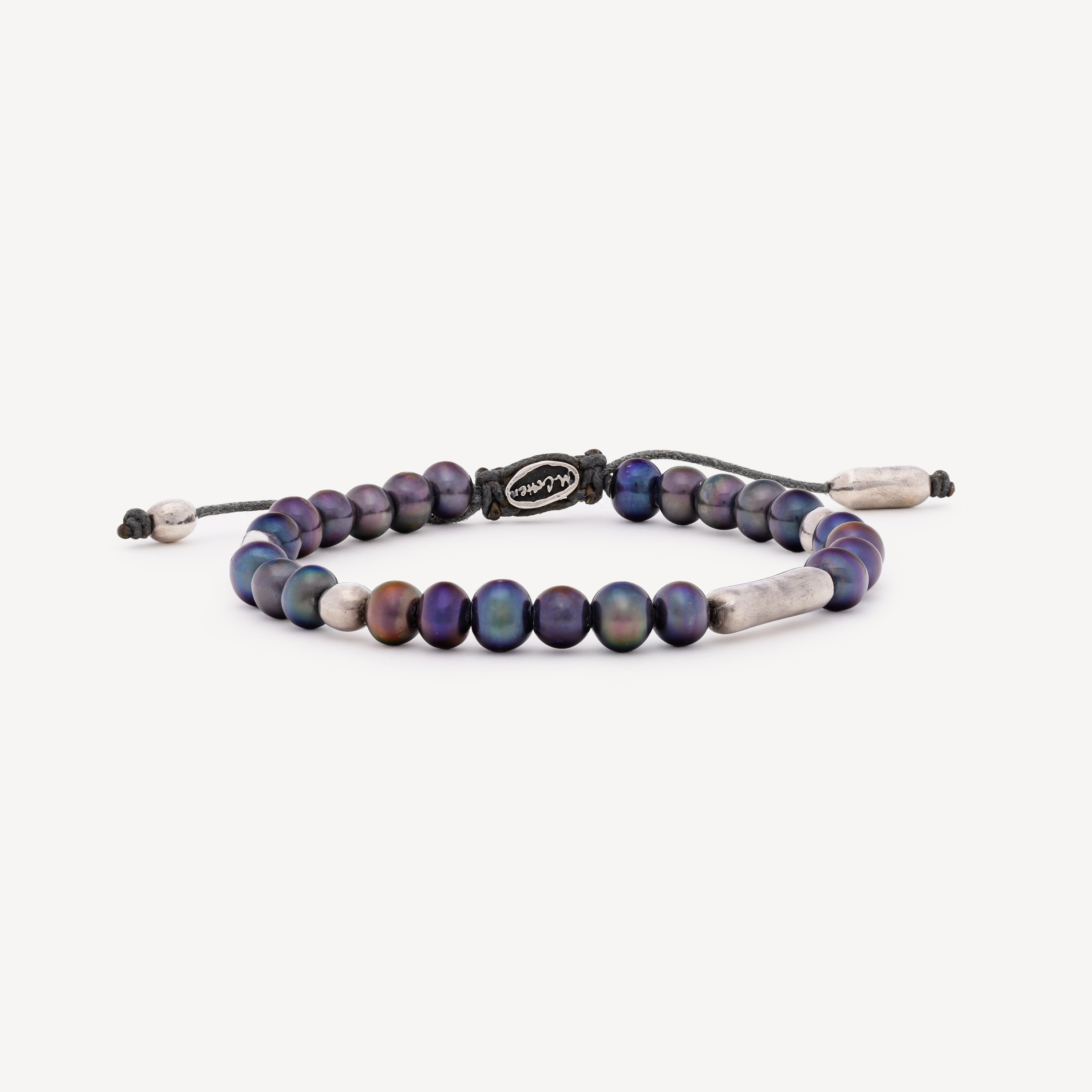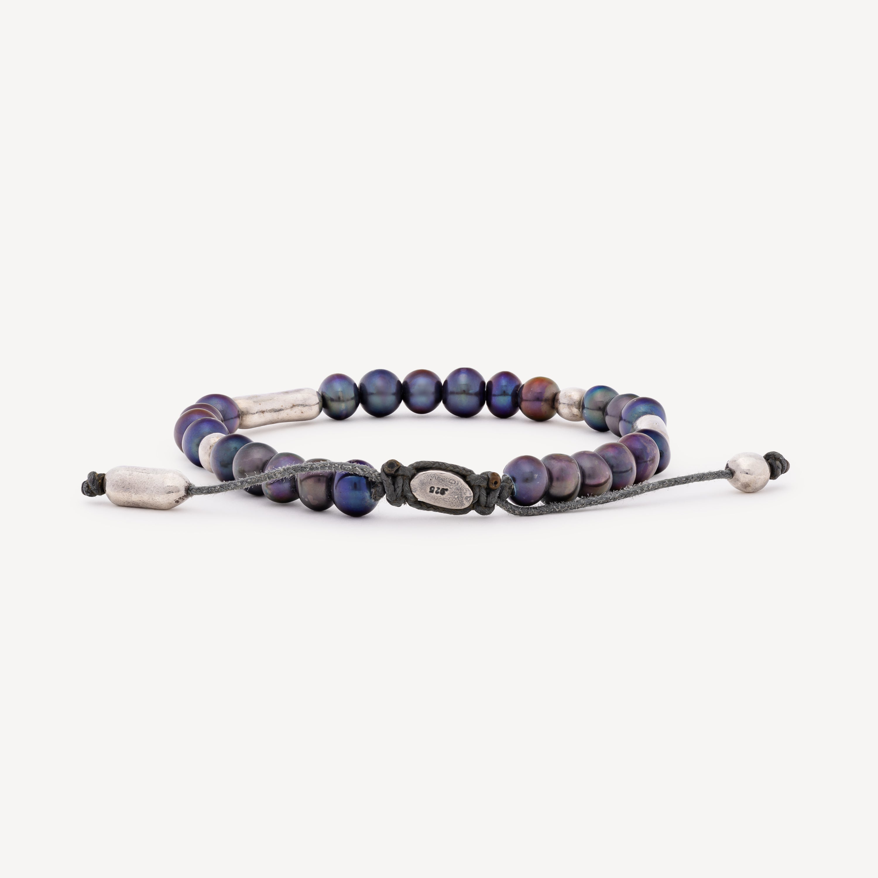 Bracelet mounted on a gray cord made of pearls andSilver.