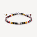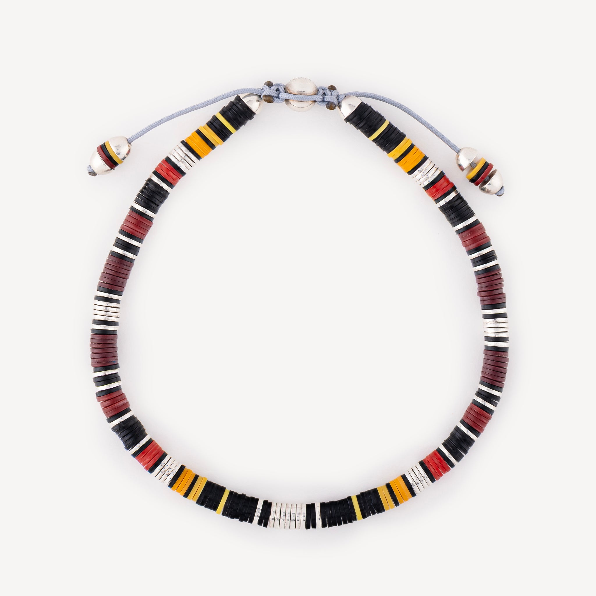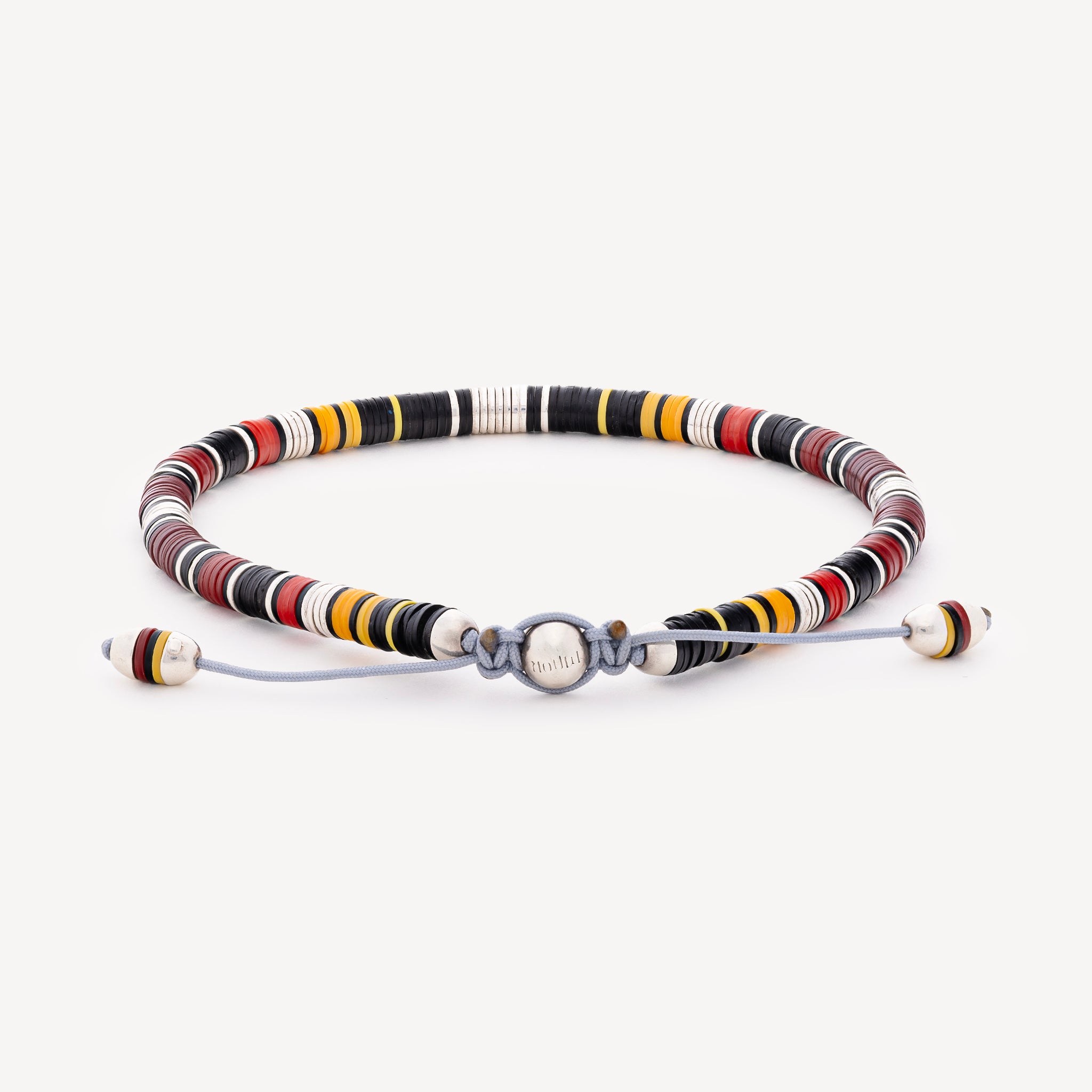 Bracelet mounted on a light gray cord made of burgundy African beads and Silver discs.
