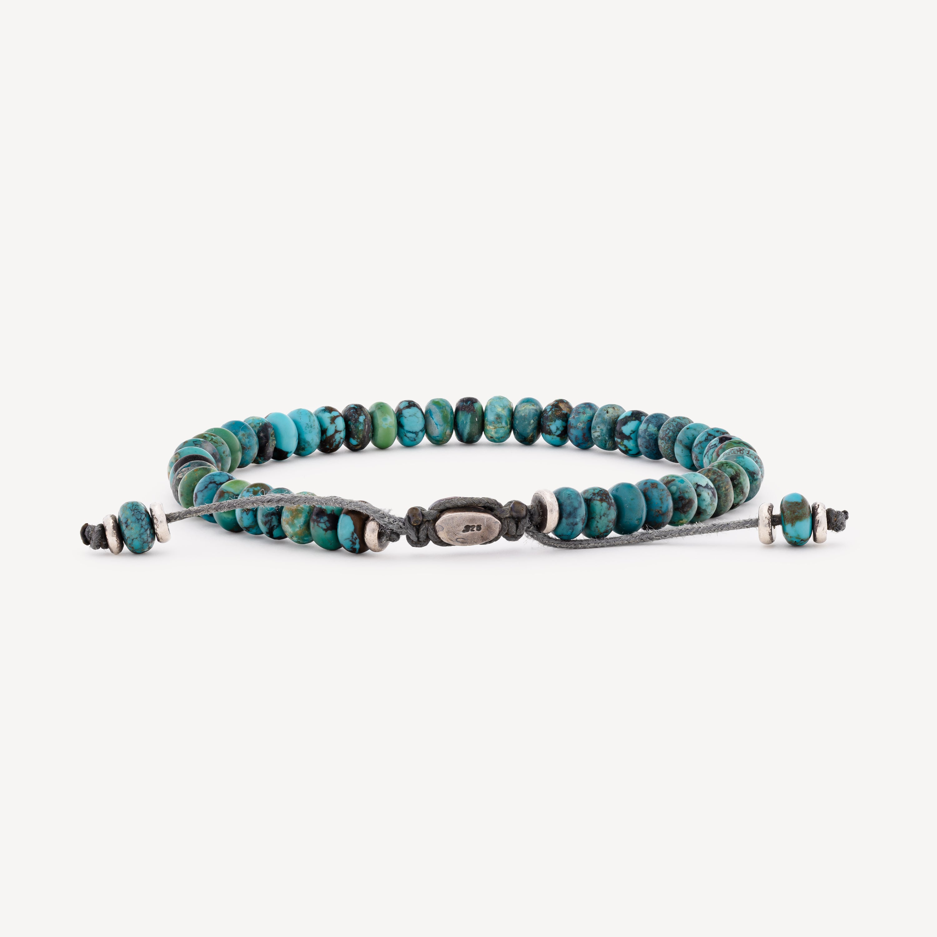 Bracelet mounted on a grey cord with turquoise beads.