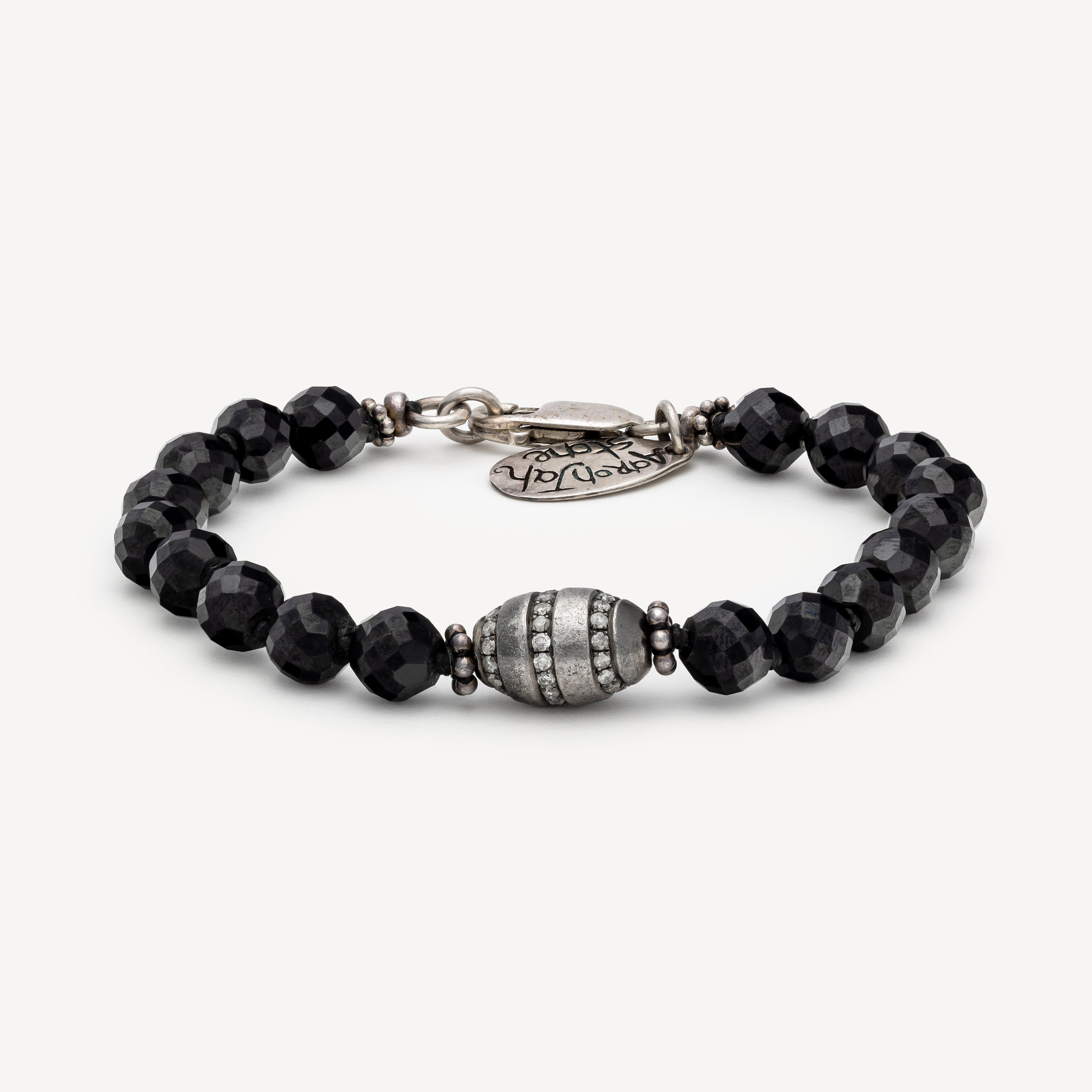 Black Tourmaline Silver Pavé Egg Bracelet