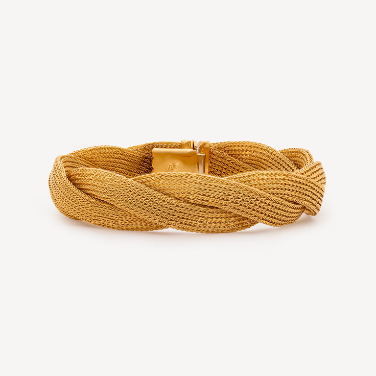 Elegant braided bracelet in yellow gold with clip clasp.