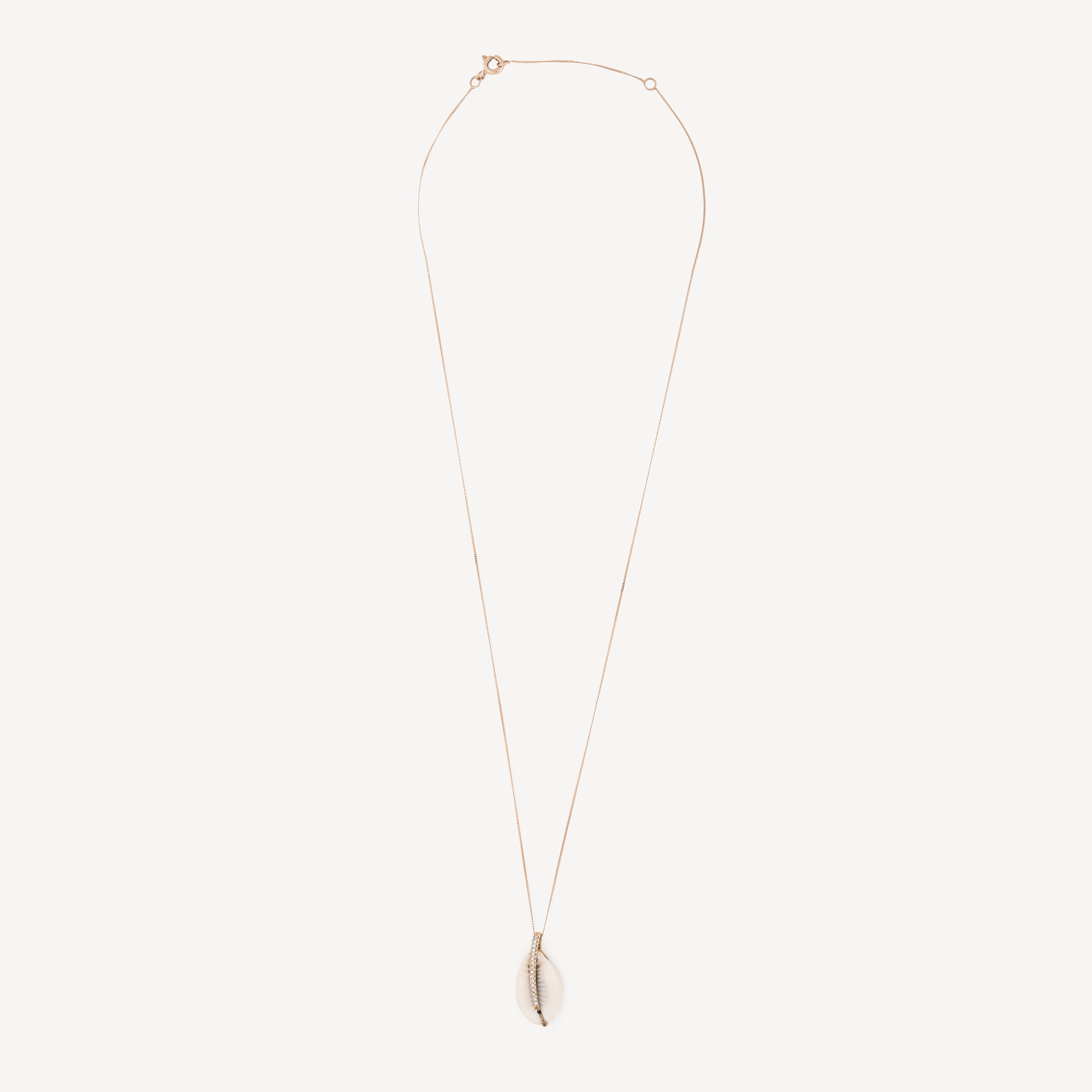 Yellow gold necklace with cauri pendant adorned with white diamonds.