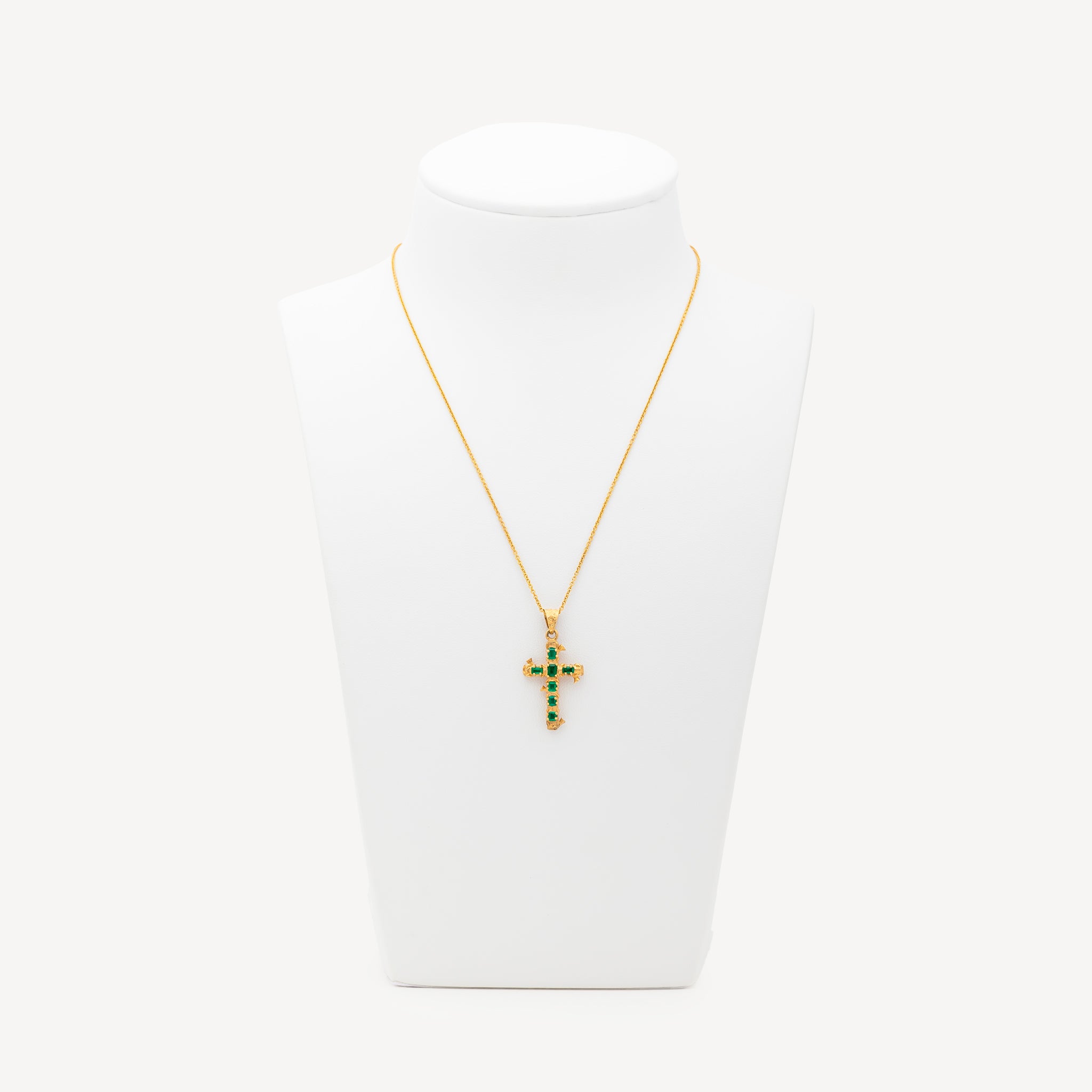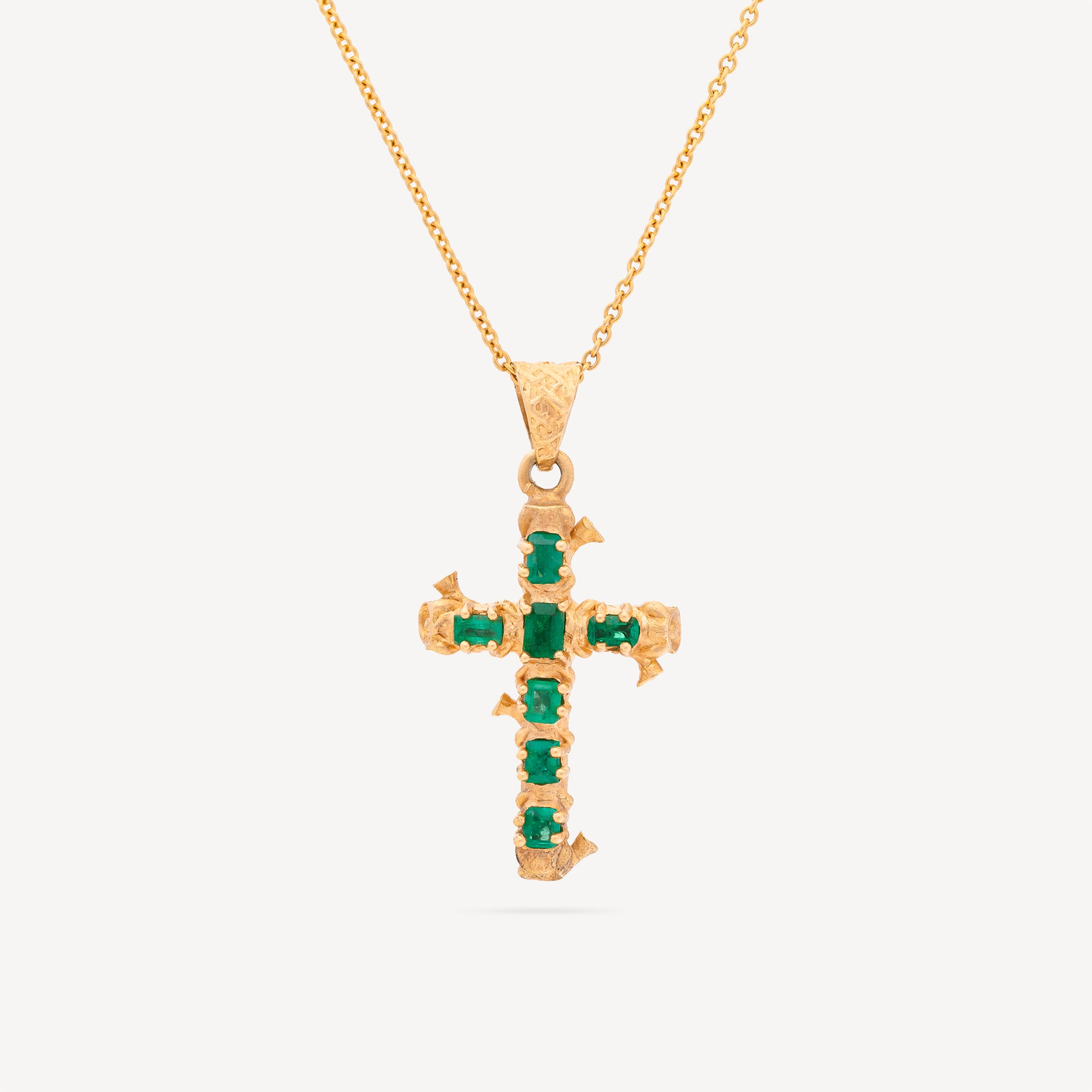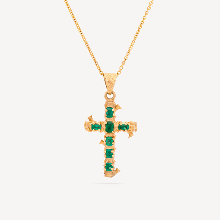 Le collier Cross Emeraude d'Ailin Jewelry allie l'élégance intemporelle du design croix à la richesse des émeraudes naturelles serties dans l'or jaune. Chaque pierre incarne la pureté et la profondeur du vert émeraude, symbole de renouveau et d'harmonie. L'émeraude est reconnue comme la pierre de l'amour véritable et de la communication authentique, favorisant l'équilibre émotionnel et l'ouverture du cœur à la sagesse intérieure.