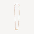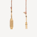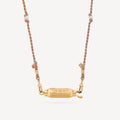 Double-turn necklace with pink and beige link, handcuff clasp and mini locket in yellow gold.