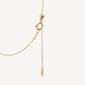 Yellow gold necklace adorned with seven loose white diamonds with sliding clasp.