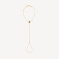 This magnificent 18ct yellow gold hand bracelet features a pear-cut yellow sapphire in the center, surrounded by white diamonds.