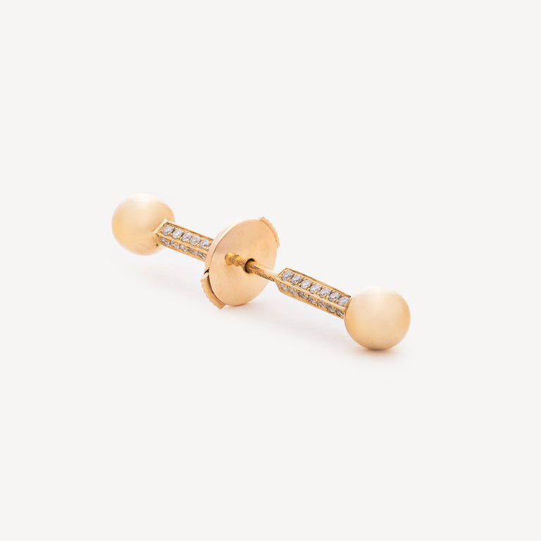 The Asherali single hoop in yellow gold and white diamonds elegantly crosses the ear, creating a contemporary effect. Its design highlights the precious stones on each side, making this piece of jewelry unique for everyday wear or to enhance your special occasions.